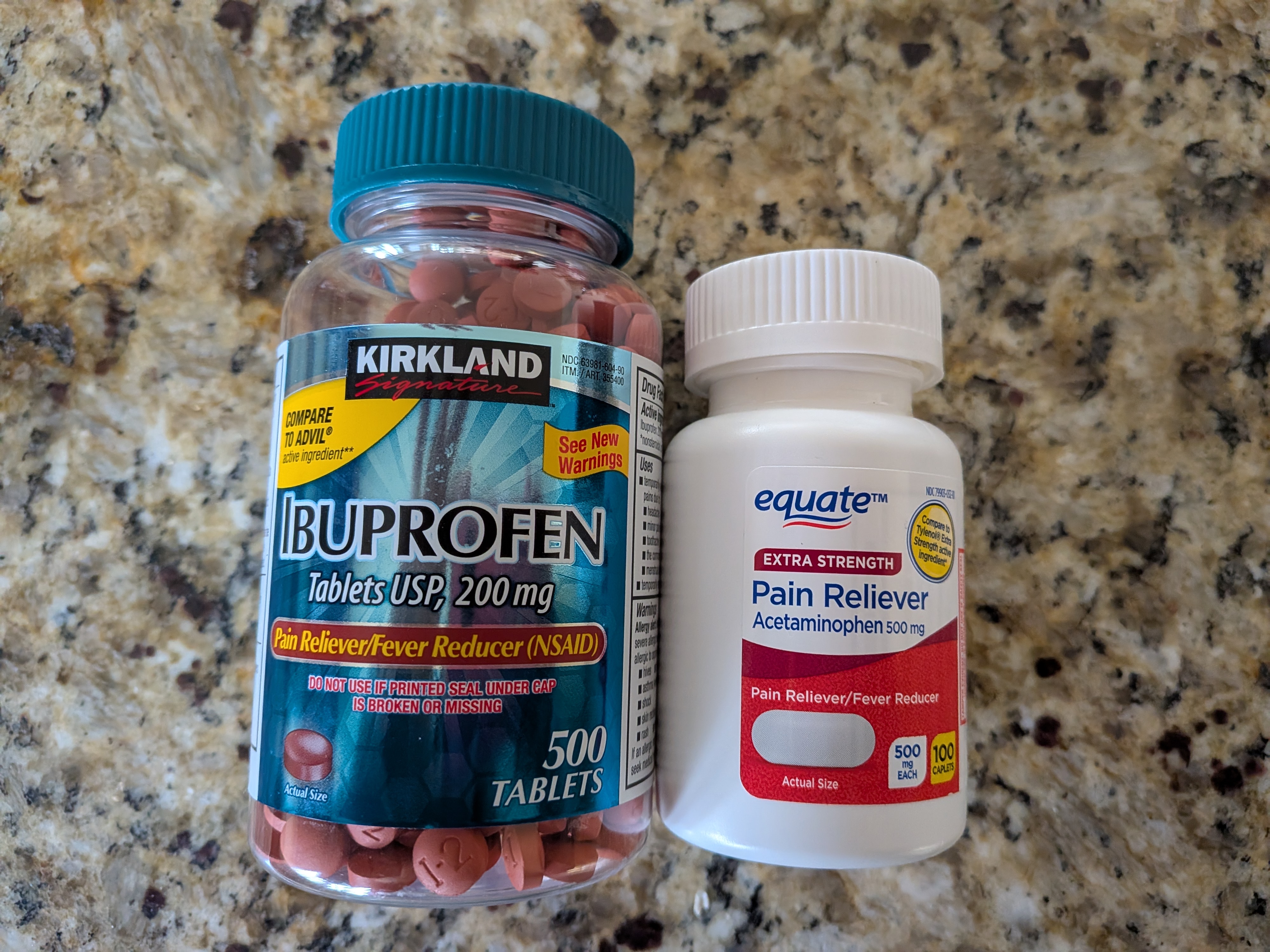 The athlete can ALTERNATE taking 1000 mg of acetaminophen and 600 mg of ibuprofen every two hours.