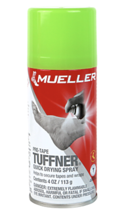 Though the patch sticks to the skin, it will stay on better if both the skin and the adhesive back of the patch are sprayed with skin tuffner before the patch is applied to the skin. This allows it to stay on even when the athlete sweats. The patch must be applied before the athlete starts to sweat however, or it won’t work at all.